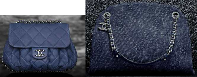Left: Periwinkle Tone Starting in Cruise 2011/12 Collection, Right: Camellia Embroidery on Denim Starting in Spring 2012 |